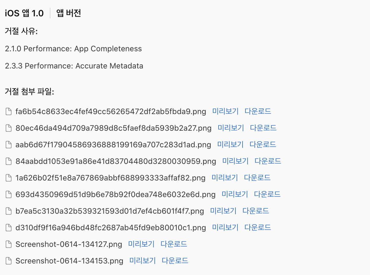 앱의 완성도와 메타데이터가 정확하지 않습니다!