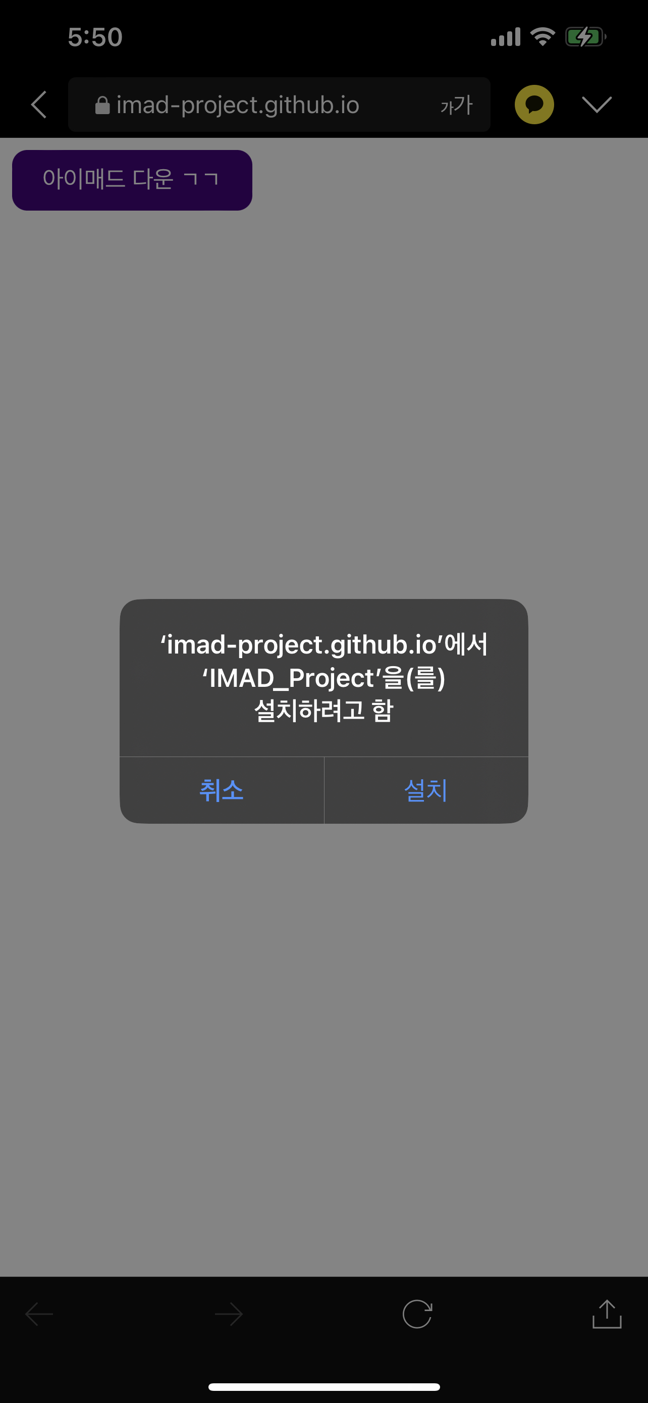 <!doctype html> <html> <head> <meta charset="utf-8"/> <title></title> <meta name="viewport" content="width=device-width, initial-scale=1.0, maximum-scale=1.0"/> <style> /* 버튼 스타일 */ .custom-button { background-color: indigo; color: white; padding: 10px 20px; border-radius: 10px; display: inline-block; text-decoration: none; } </style> </head> <body> <a class="custom-button" href="itms-services://?action=download-manifest&url=[manifest.plist파일 경로]">아이매드 다운 ㄱㄱ</a> </body> </html>필자같은 경우 이렇게 만들었다. 그러고 또 업로드.