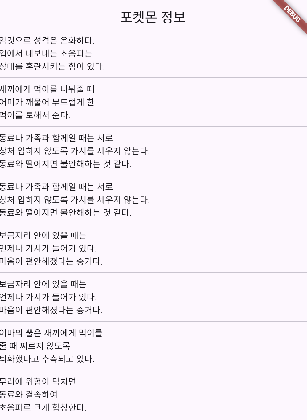 받아온 정보를 ListView.builder 혹은 ListView.separated로 표시해줬다.